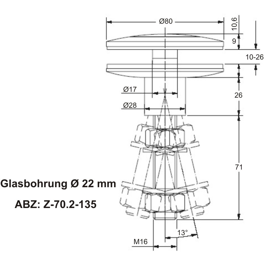 Zeichnung Fassadenpunkthalter Art.-Nr. 19026ff