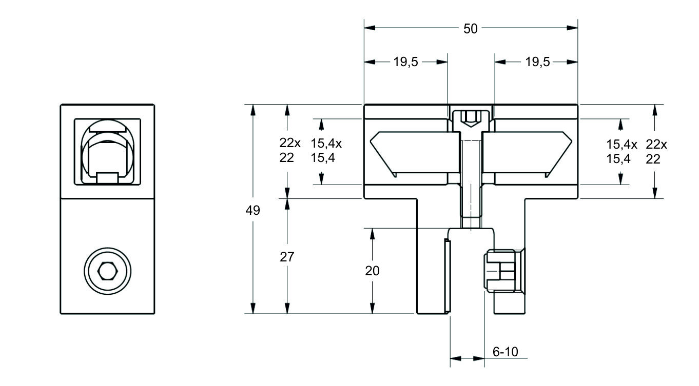 T-Stück beidseitig, für Stabilisierungsstange Art.-Nr. 46 570ff
