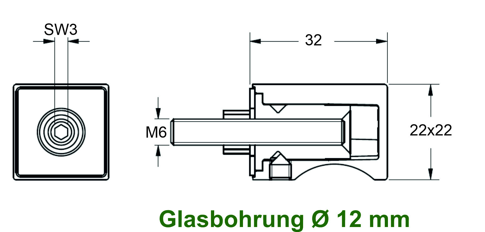 Griffstück für Duschtürgriff / Handtuchhalter 15 x 15 mm, für
