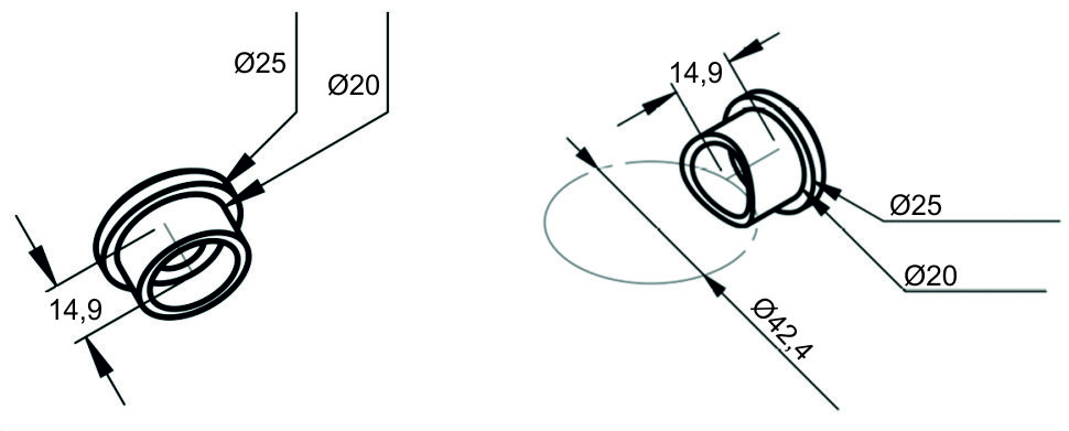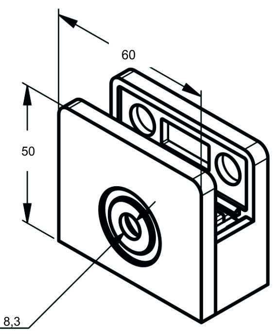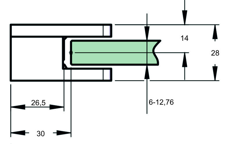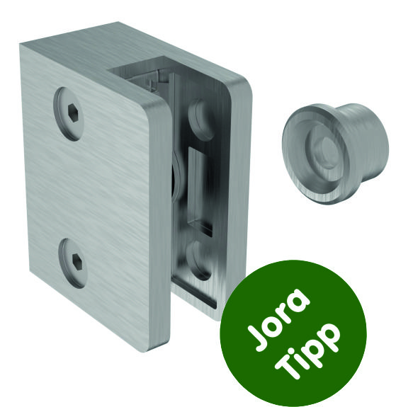 End-Klemmbefestigung mit Gummi-Einlagen, zwei Senkkopfschrauben und inkl. Abstandshalter, rechts und links verwendbar