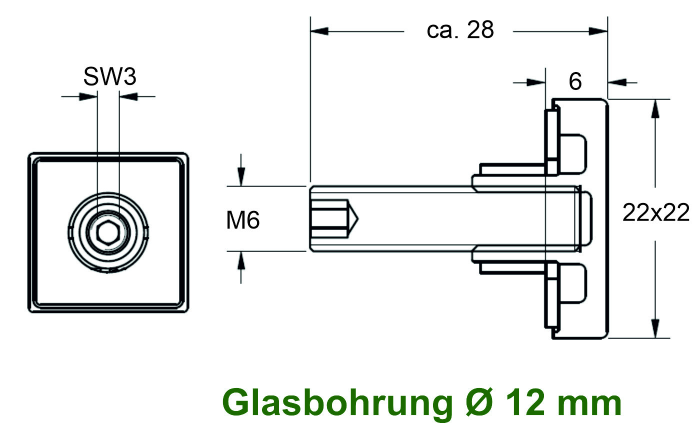 Eckiger Punkthalter für Duschtürgriff / Handtuchhalter 15 x 15 mm, für