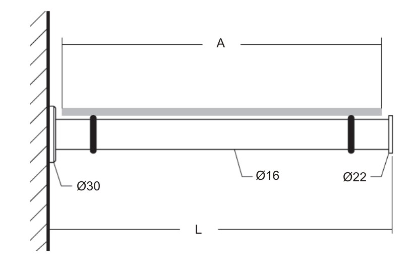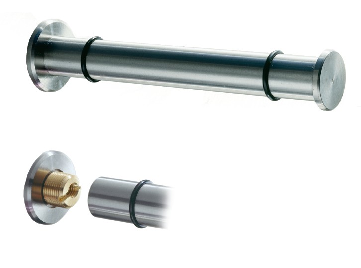 Regalträger Ø 16 mm, mit Anschraubhülse und Unterlegscheibe, zur Befestigung mit einer Universalschraube (4,5 mm), Stockschraube oder Gewindestift (M6) (nicht im Lieferumfang enthalten)