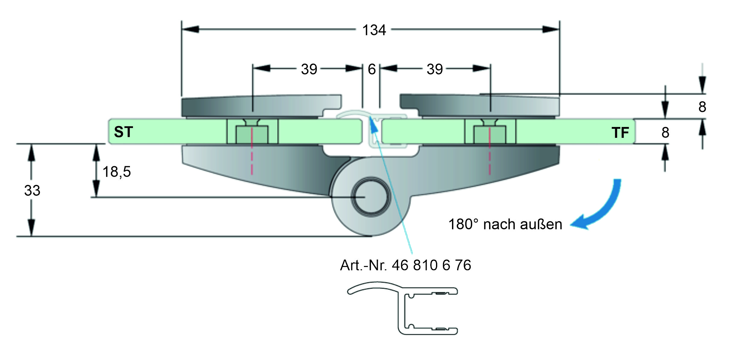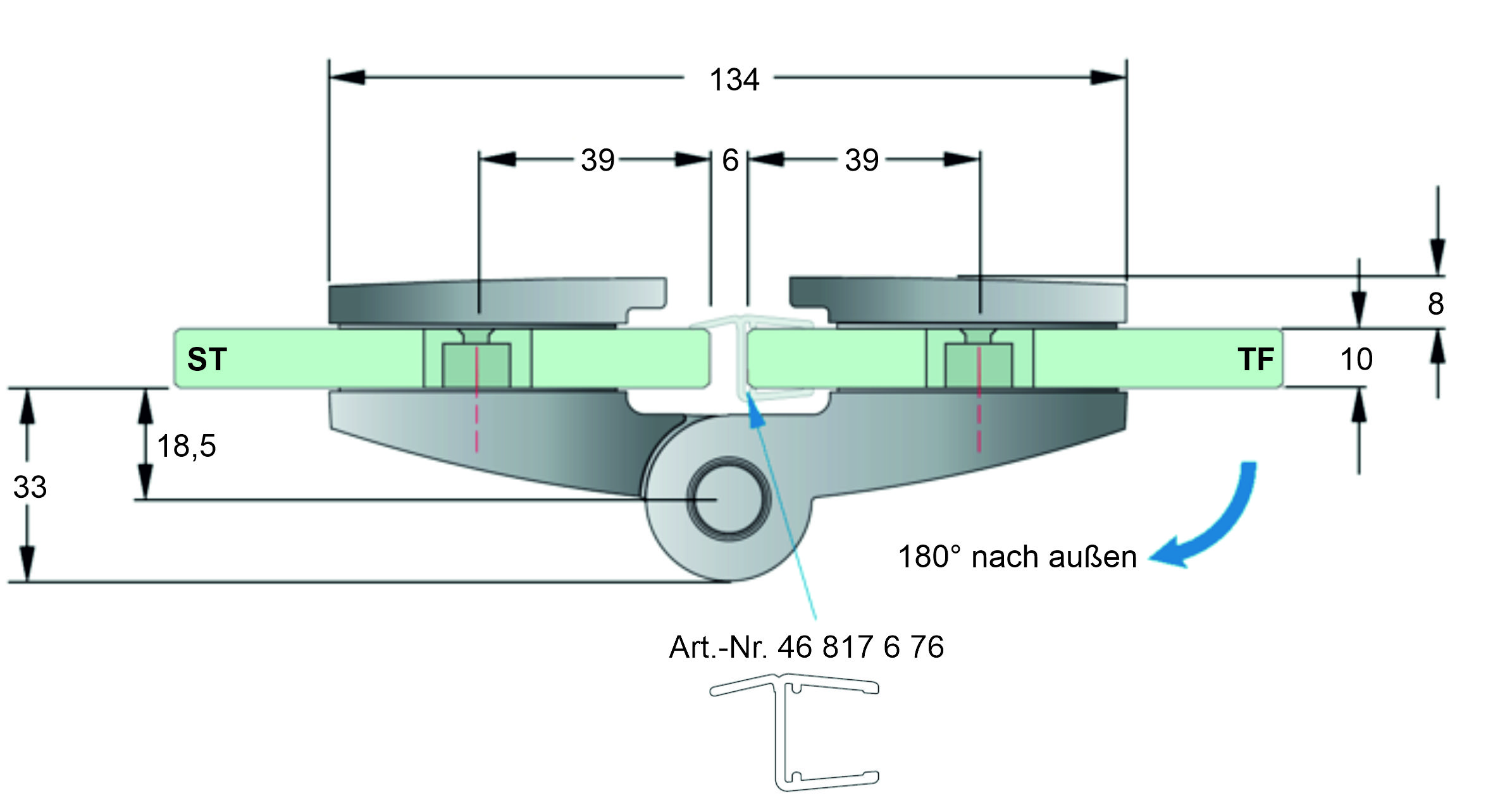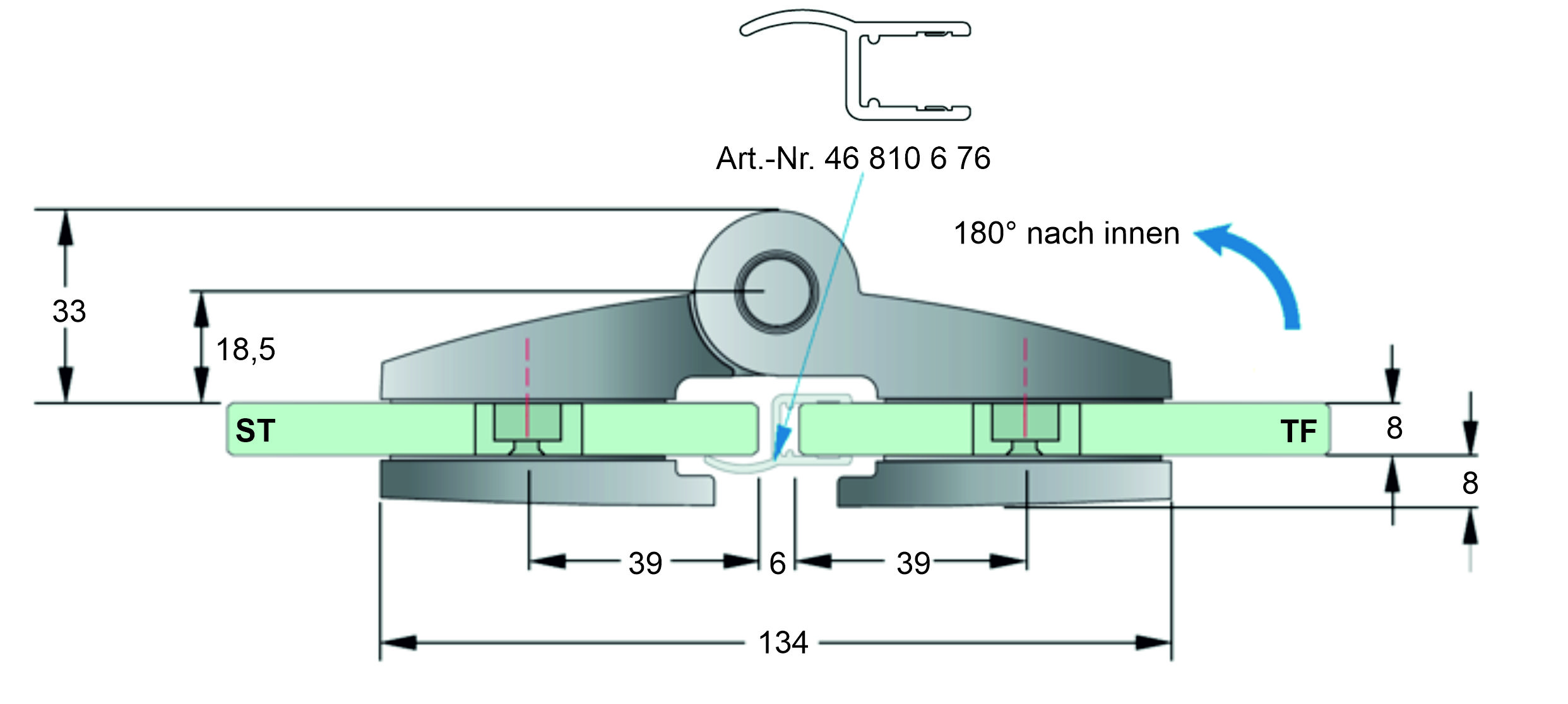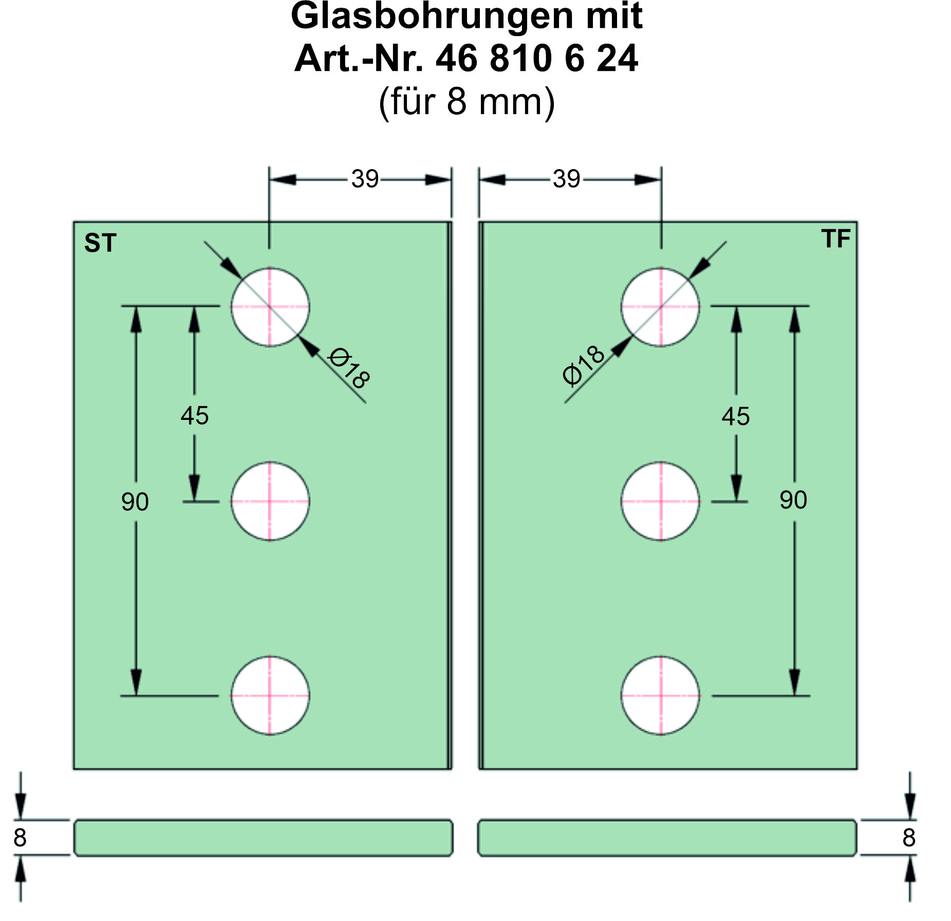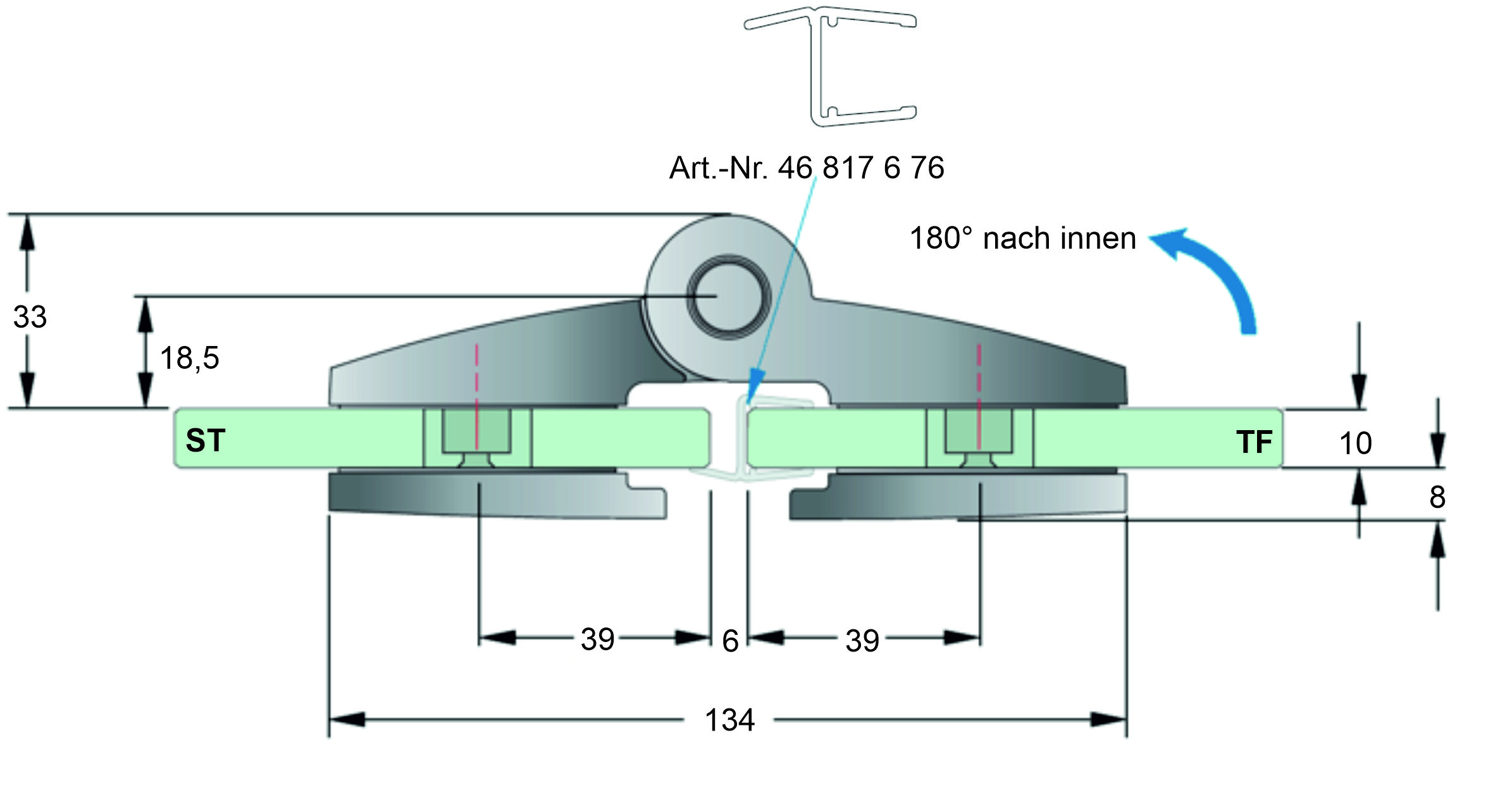 8 - 12 mm Glasdicke, mit verstellbarer Nulllagenstellung und verdeckter Verschraubung