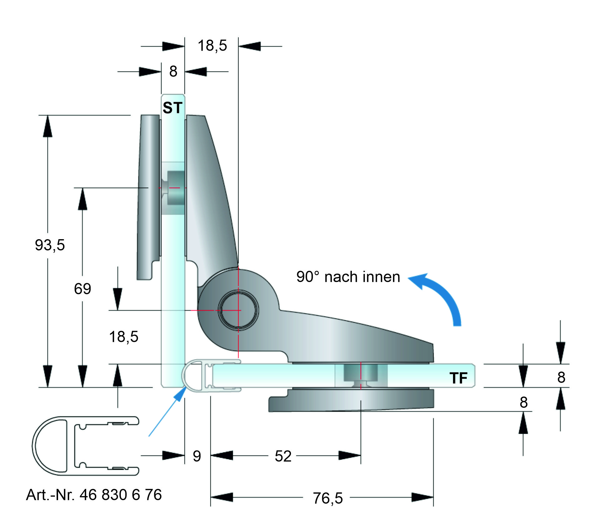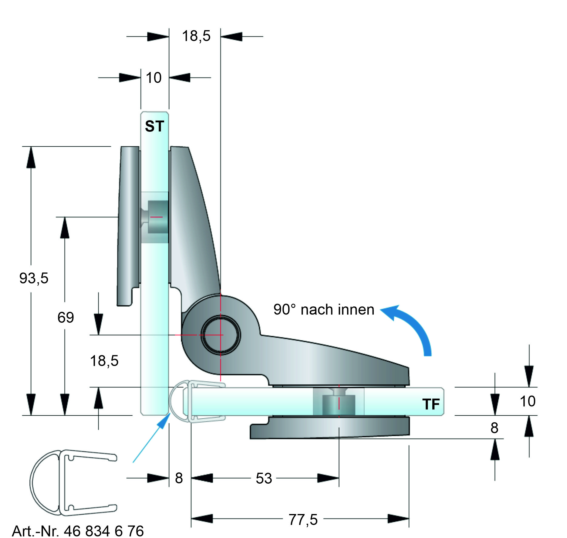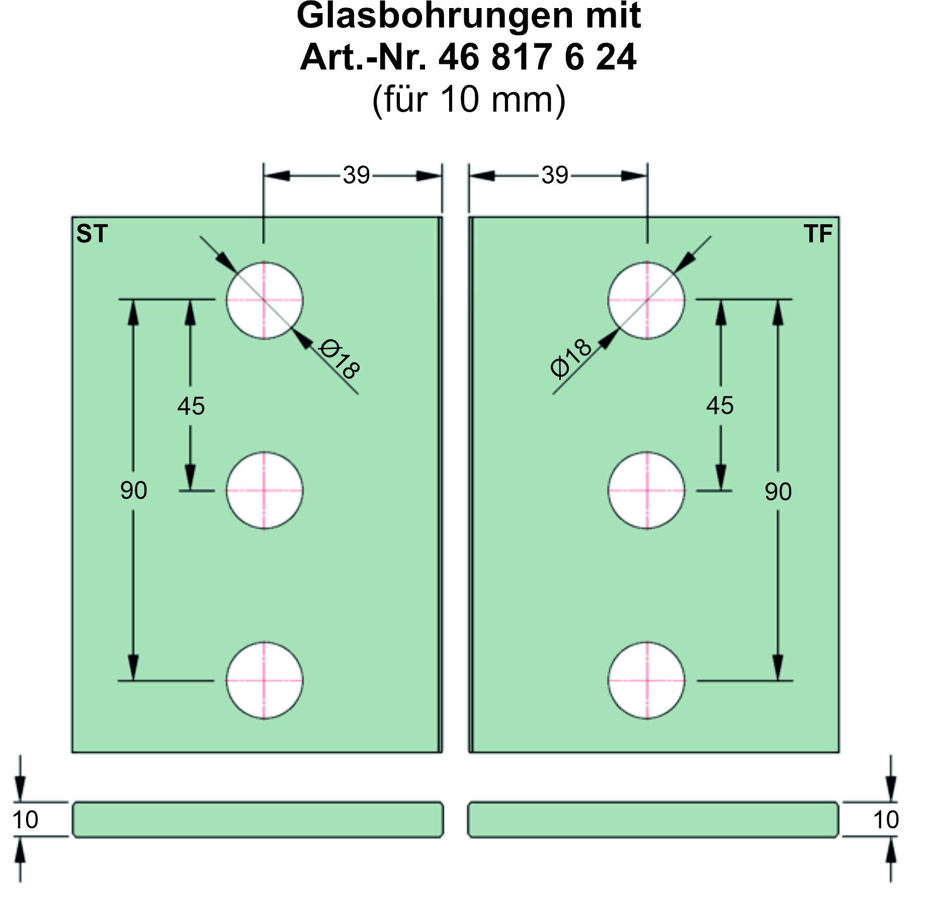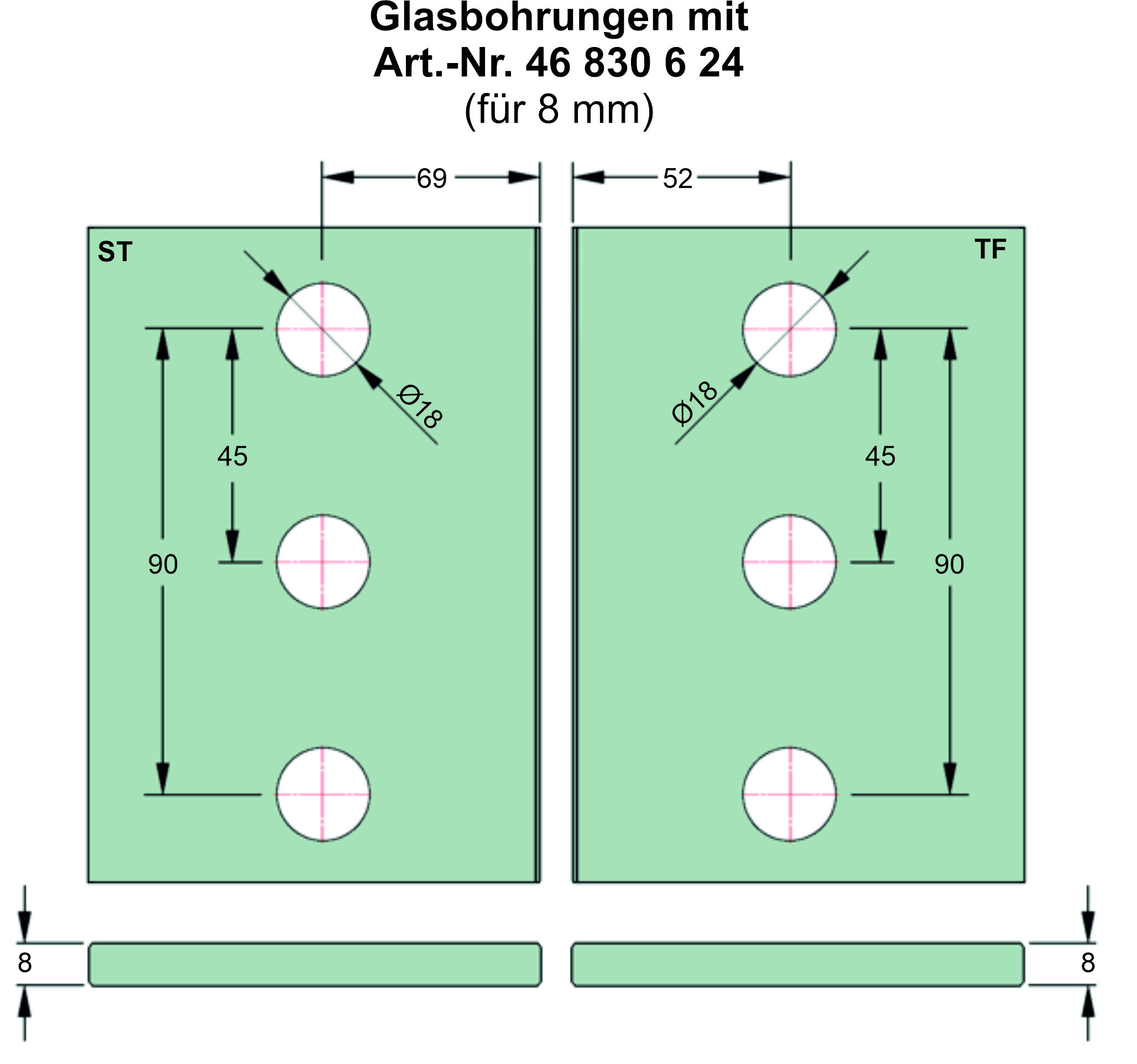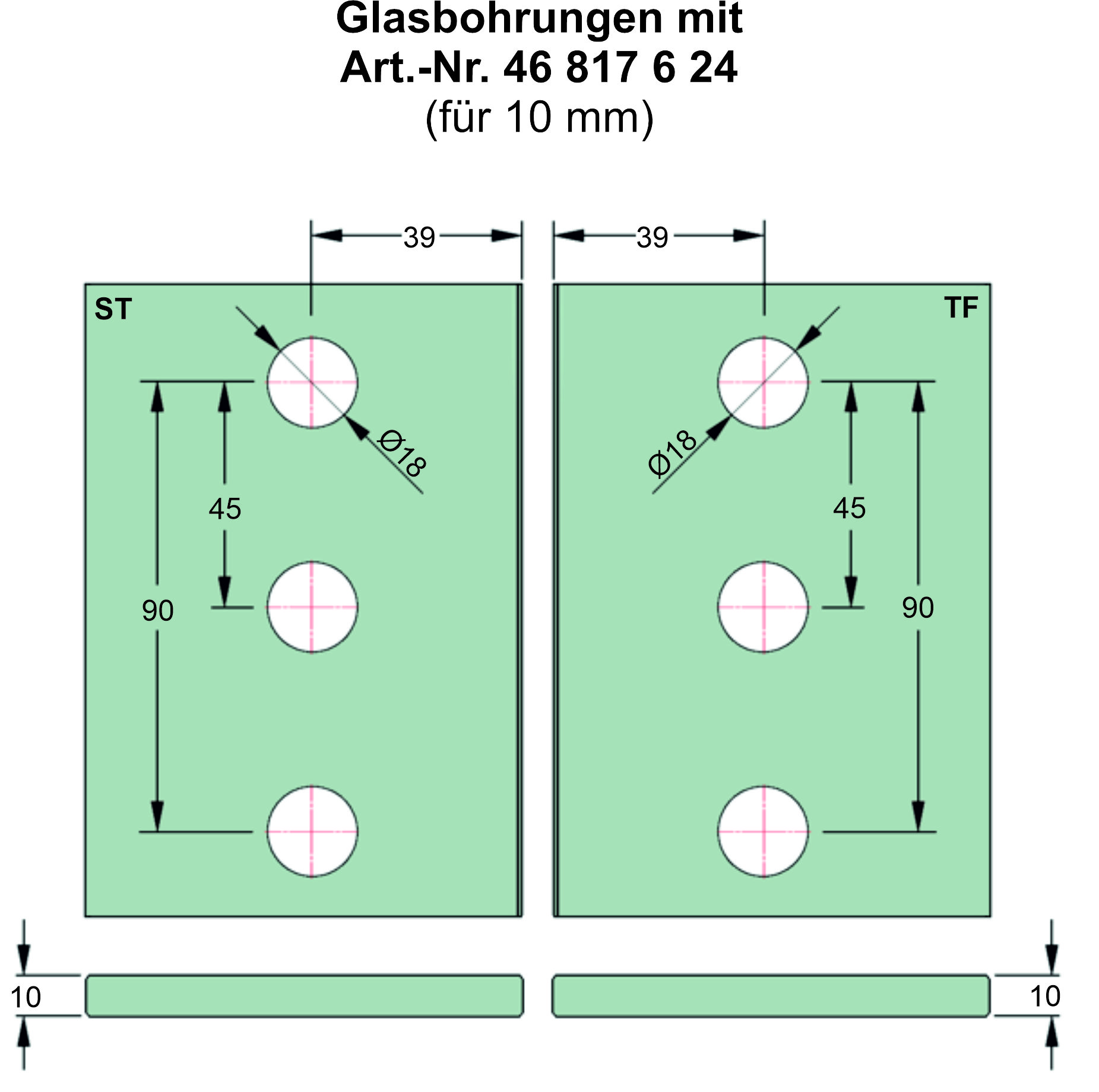 8 - 12 mm Glasdicke, mit verstellbarer Nulllagenstellung und verdeckter Verschraubung