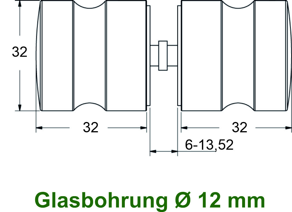 6 - 13,52 mm Glasdicke, doppelseitig, mit Gewindestift und 2 KU-Unterlegscheiben